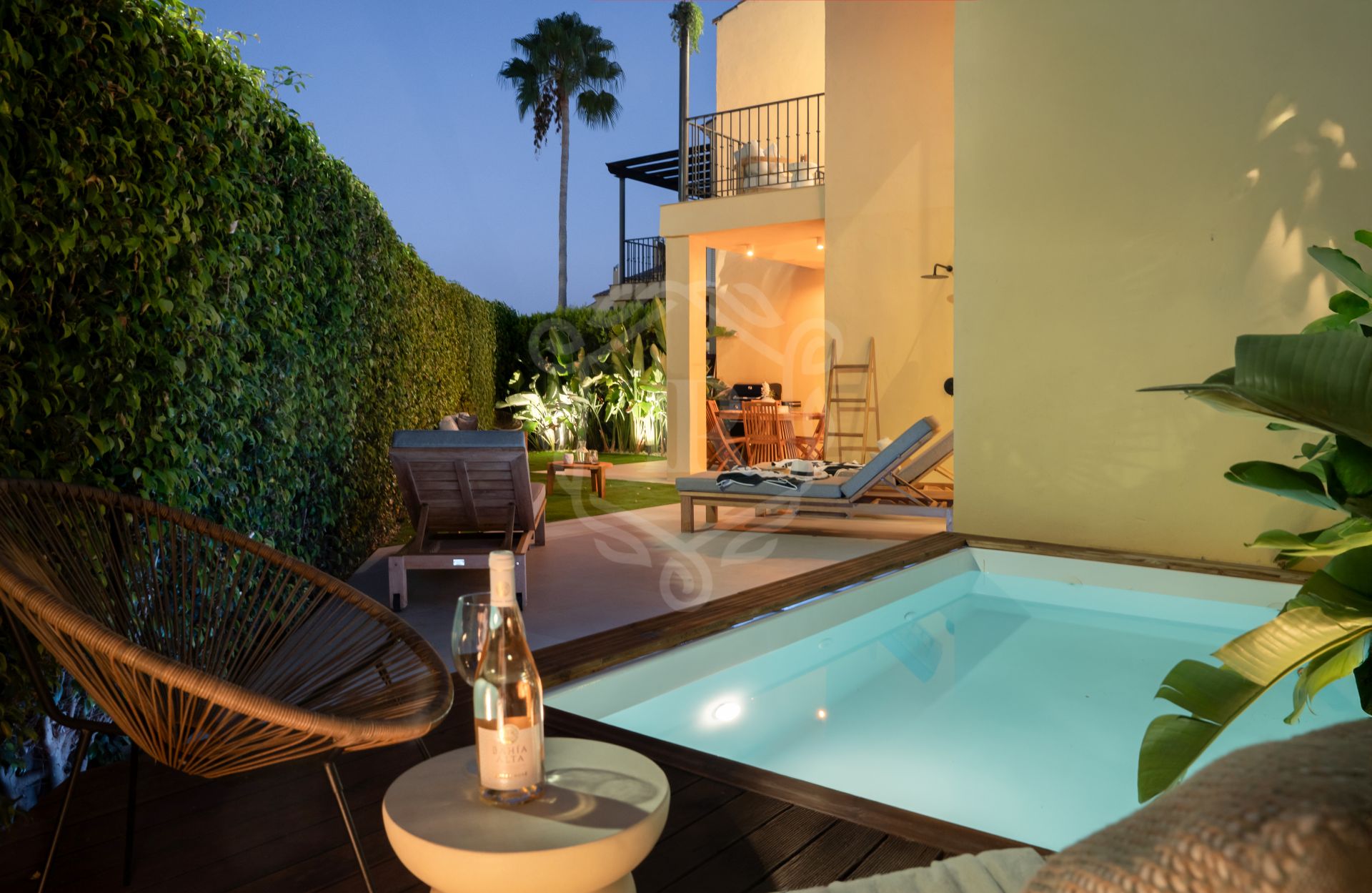 This is a stunning, recently refurbished townhouse located in the prestigious Azalea Beach area, just a short stroll from the world-famous Puerto Banús. Positioned between San Pedro and Puerto Banús, this property offers the perfect combination of beachside tranquility and immediate access to the vibrant harbour, luxury shopping, fine dining, and nightlife that Banús is renowned for. The beach is only 200 metres away, with a scenic promenade connecting you effortlessly to both Puerto Banús and San Pedro.