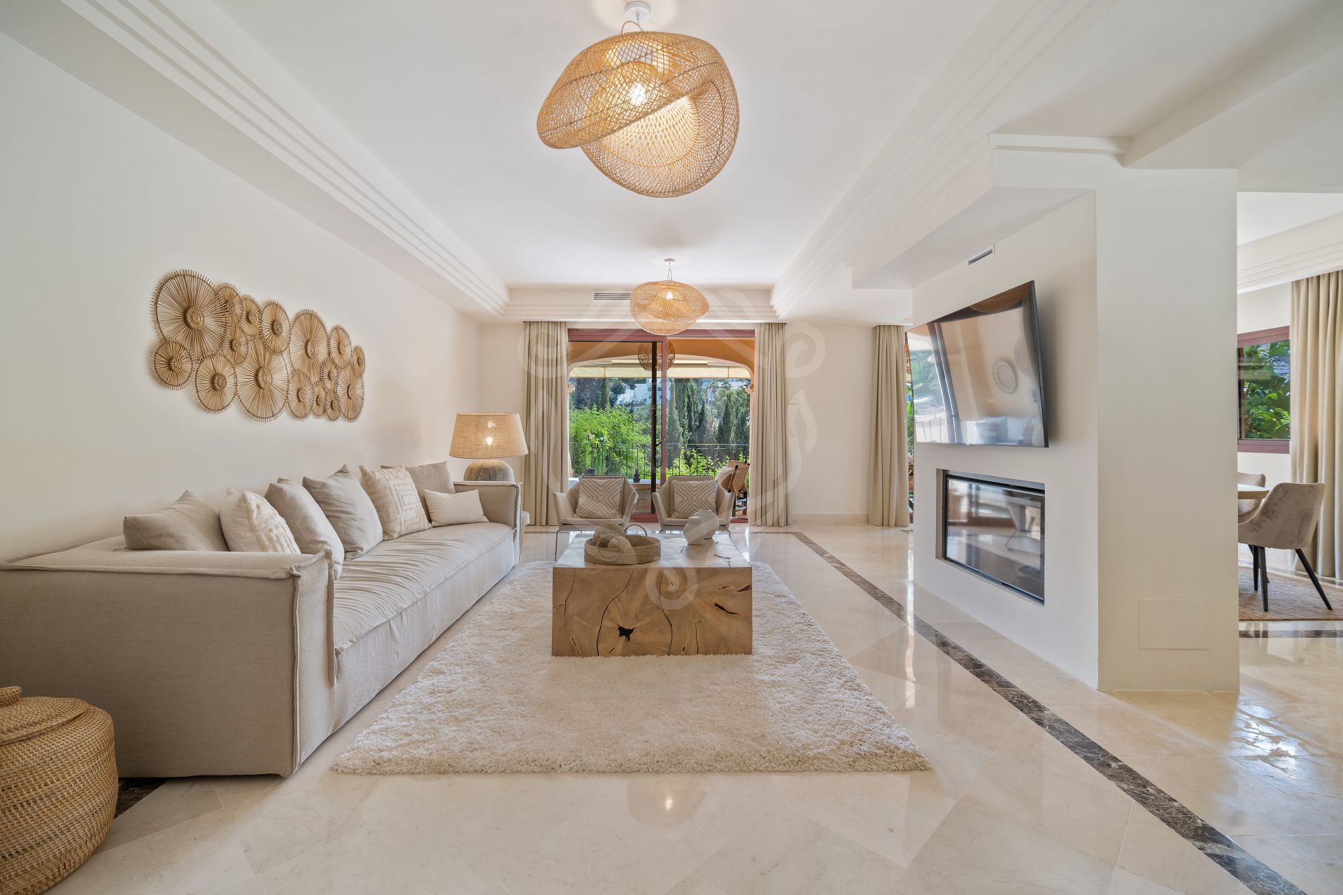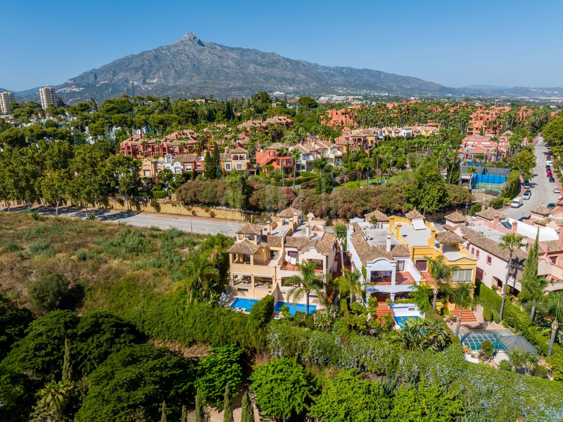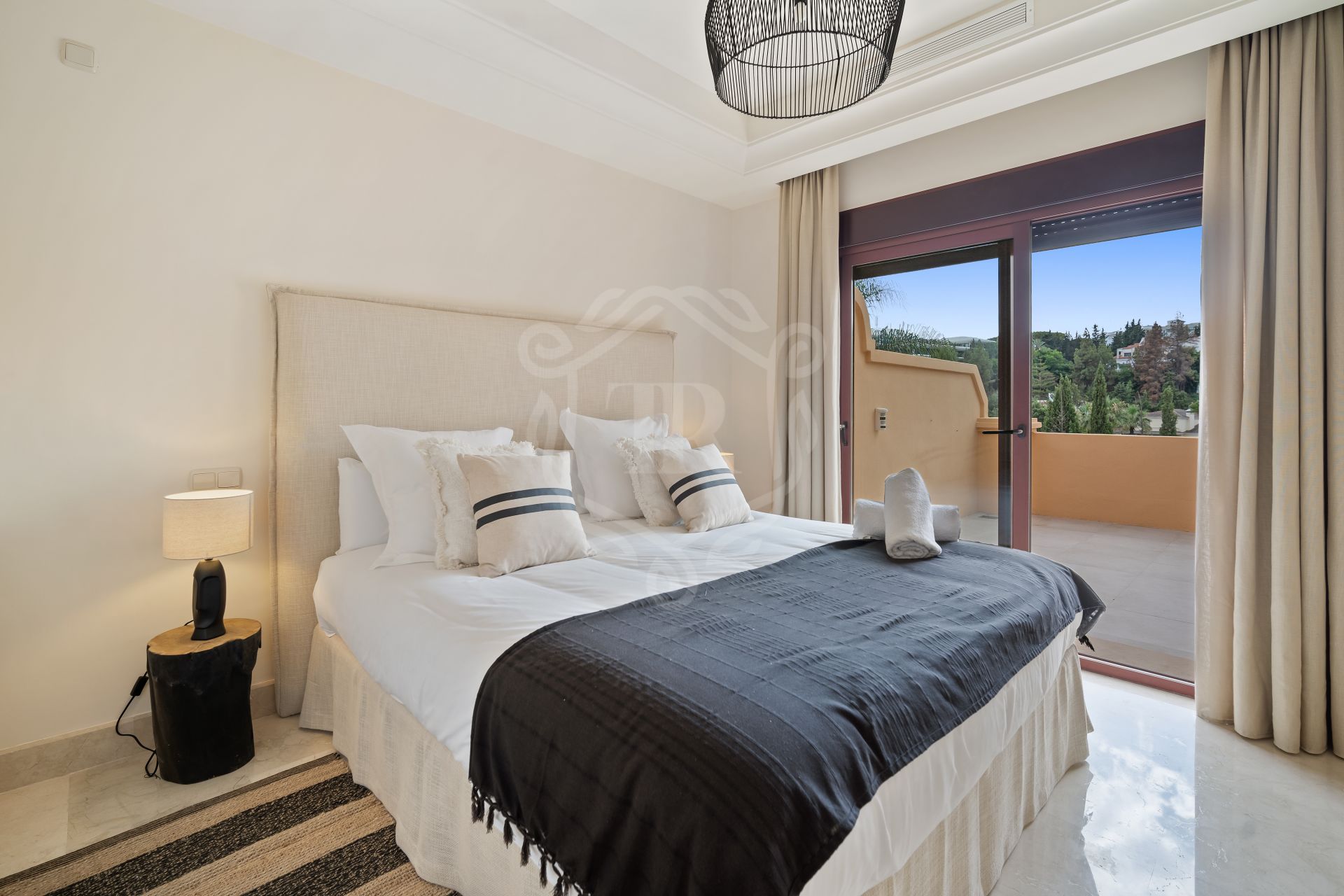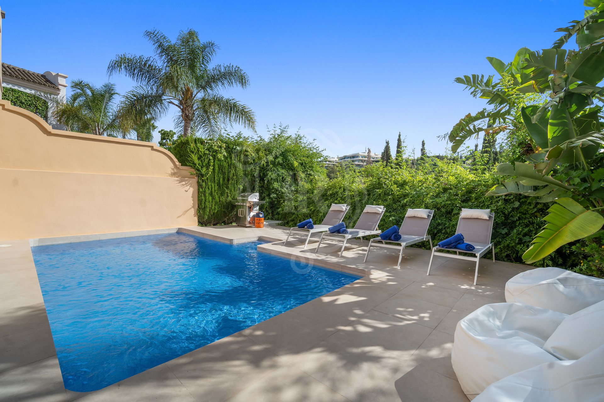 This spacious 5 bedrooms villa is situated in the gated community of Vasari Resort, Puerto Banus. Calm and very well maintained community just few steps from all the amenities and famous Puerto Banus. Perfect combination for those seeking tranquillity, but being next door to the active social life.