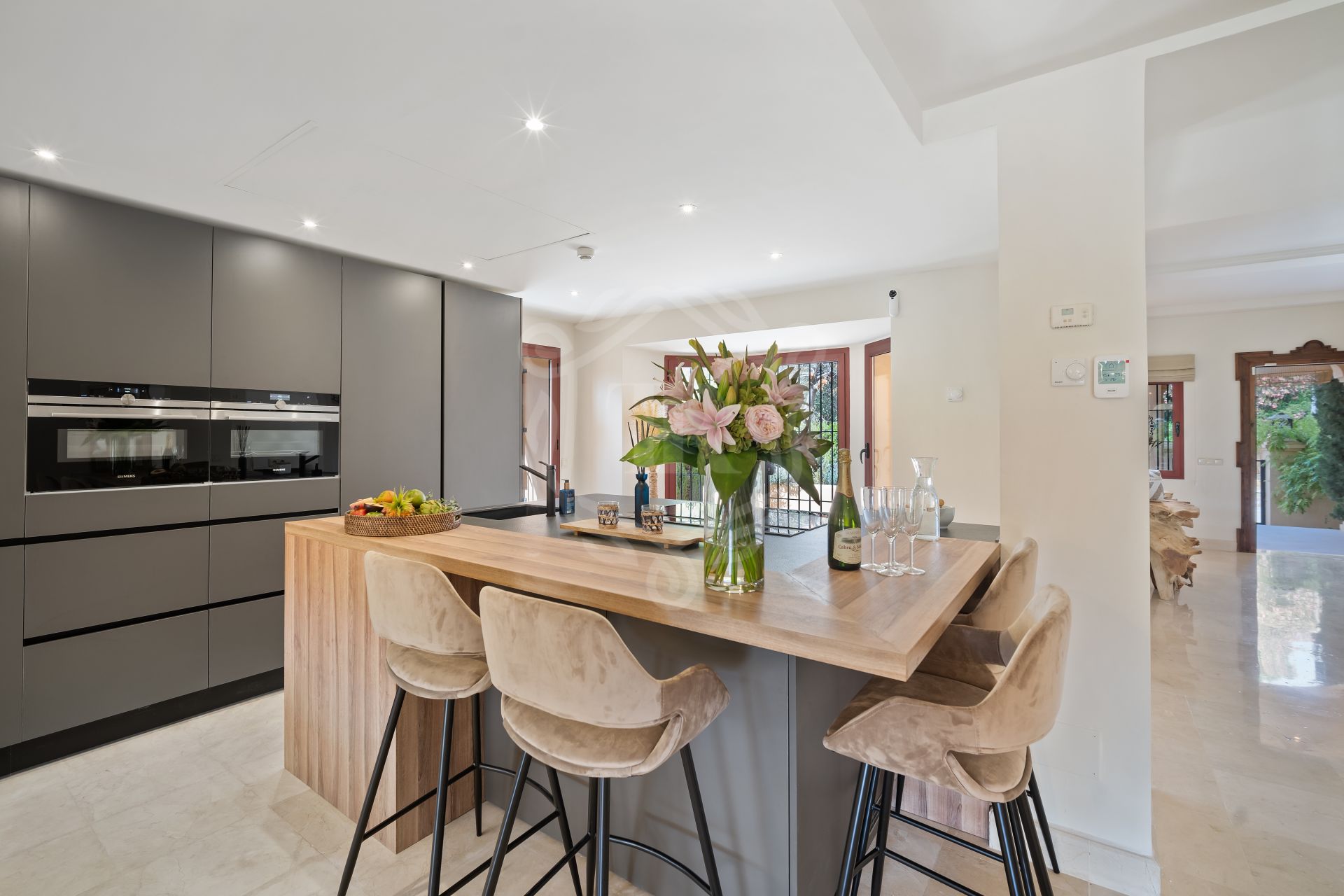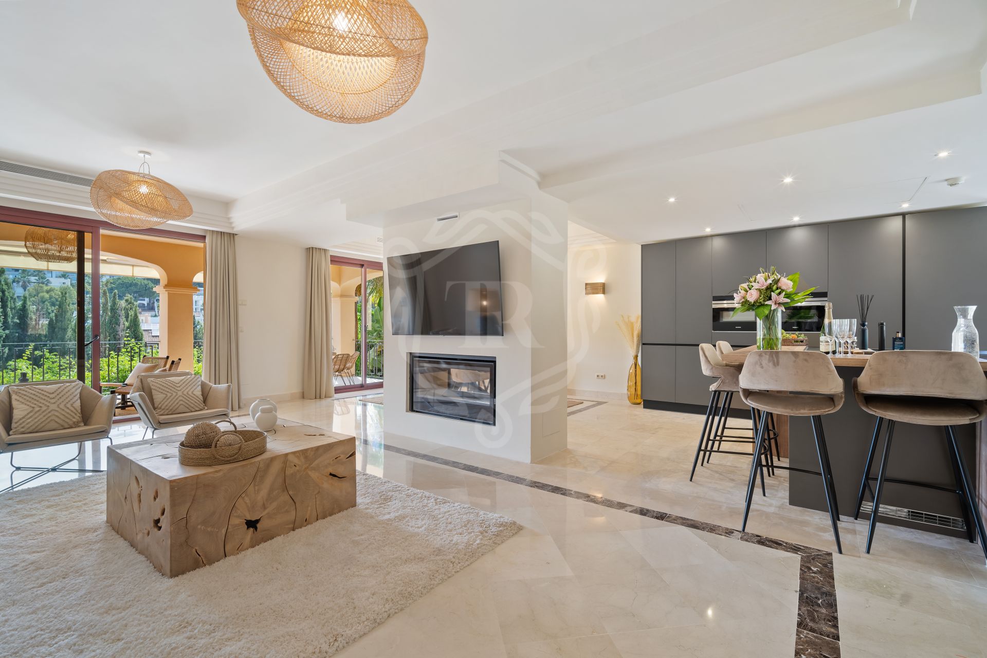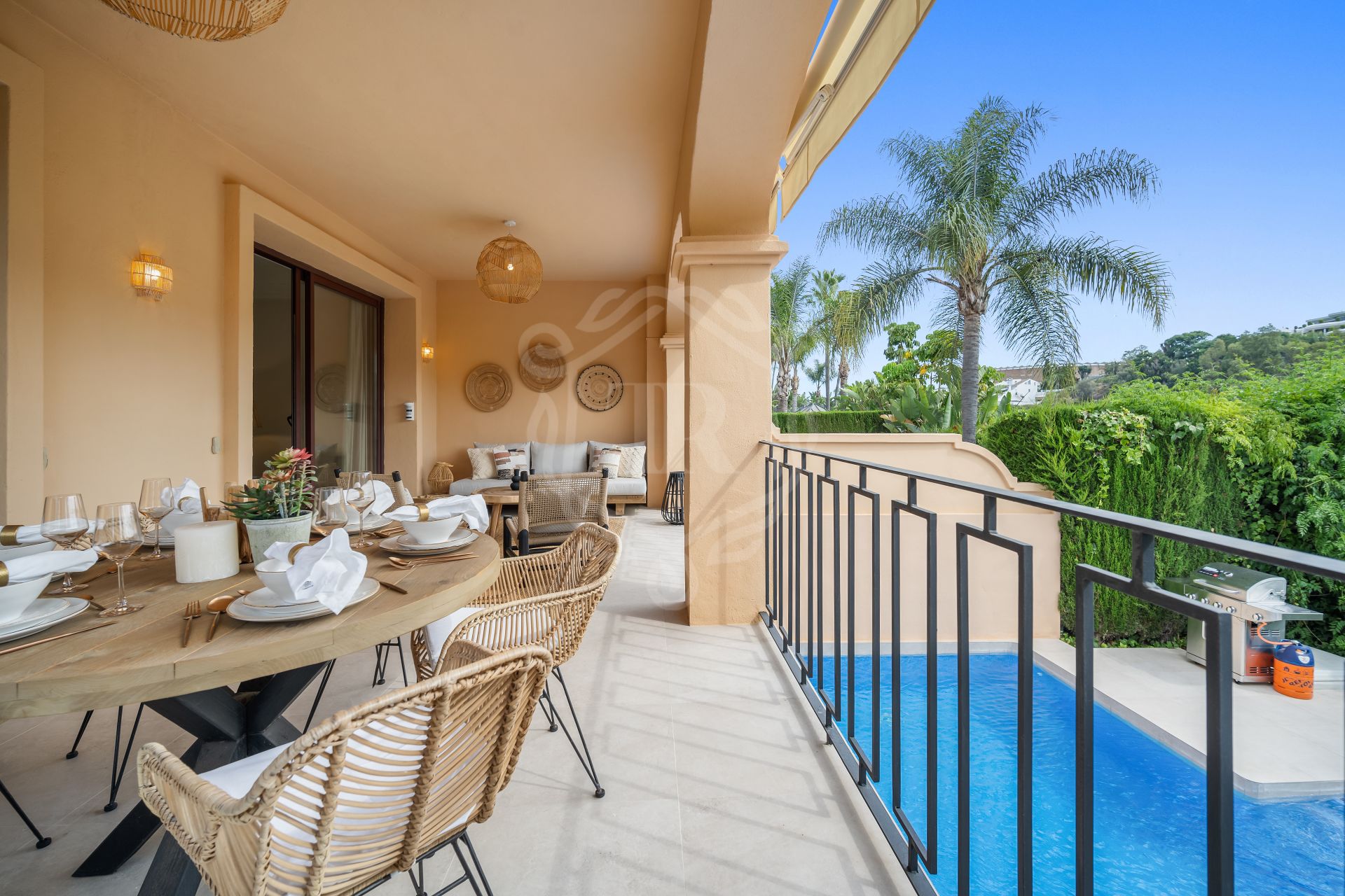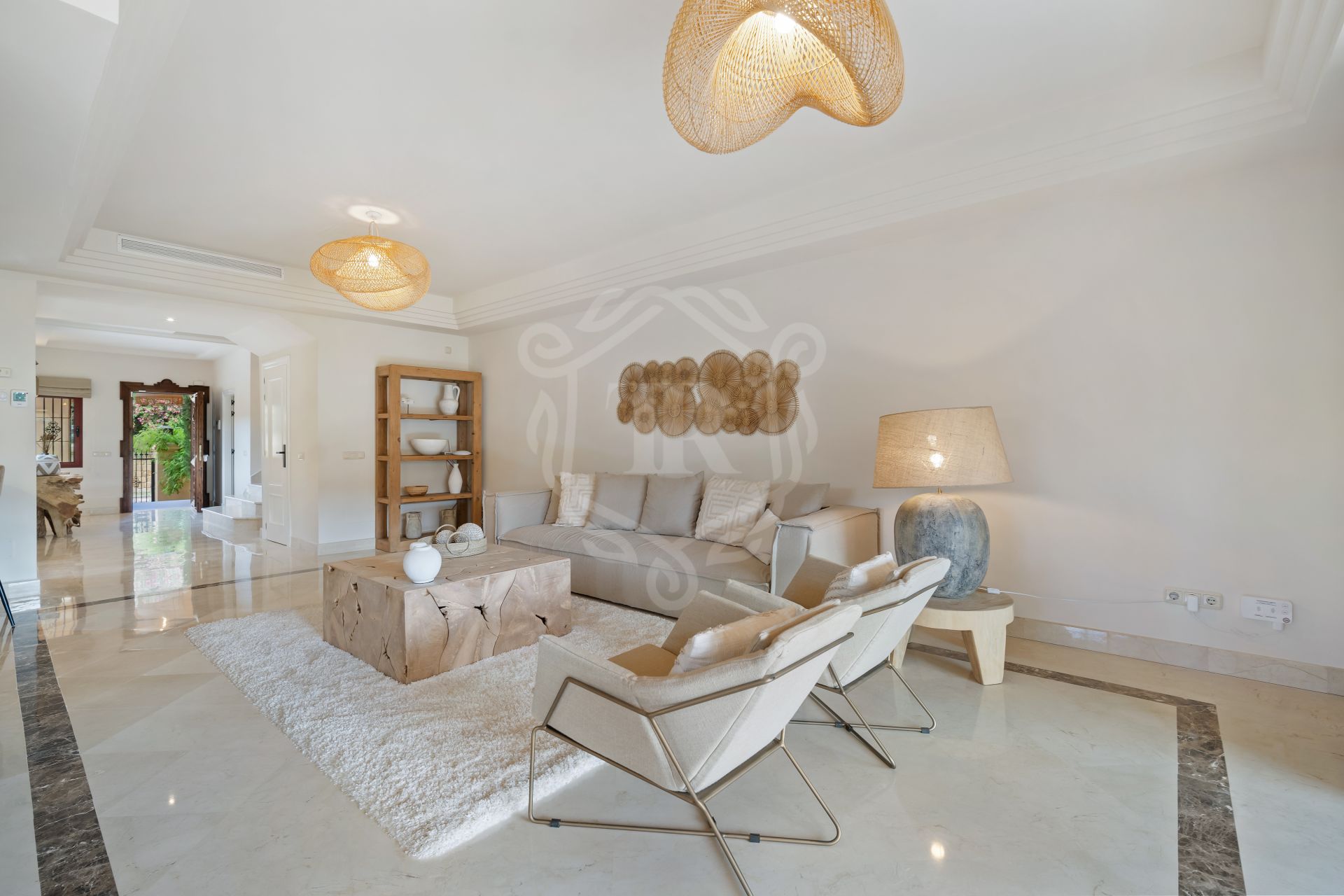 This spacious 5 bedrooms villa is situated in the gated community of Vasari Resort, Puerto Banus. Calm and very well maintained community just few steps from all the amenities and famous Puerto Banus. Perfect combination for those seeking tranquillity, but being next door to the active social life.