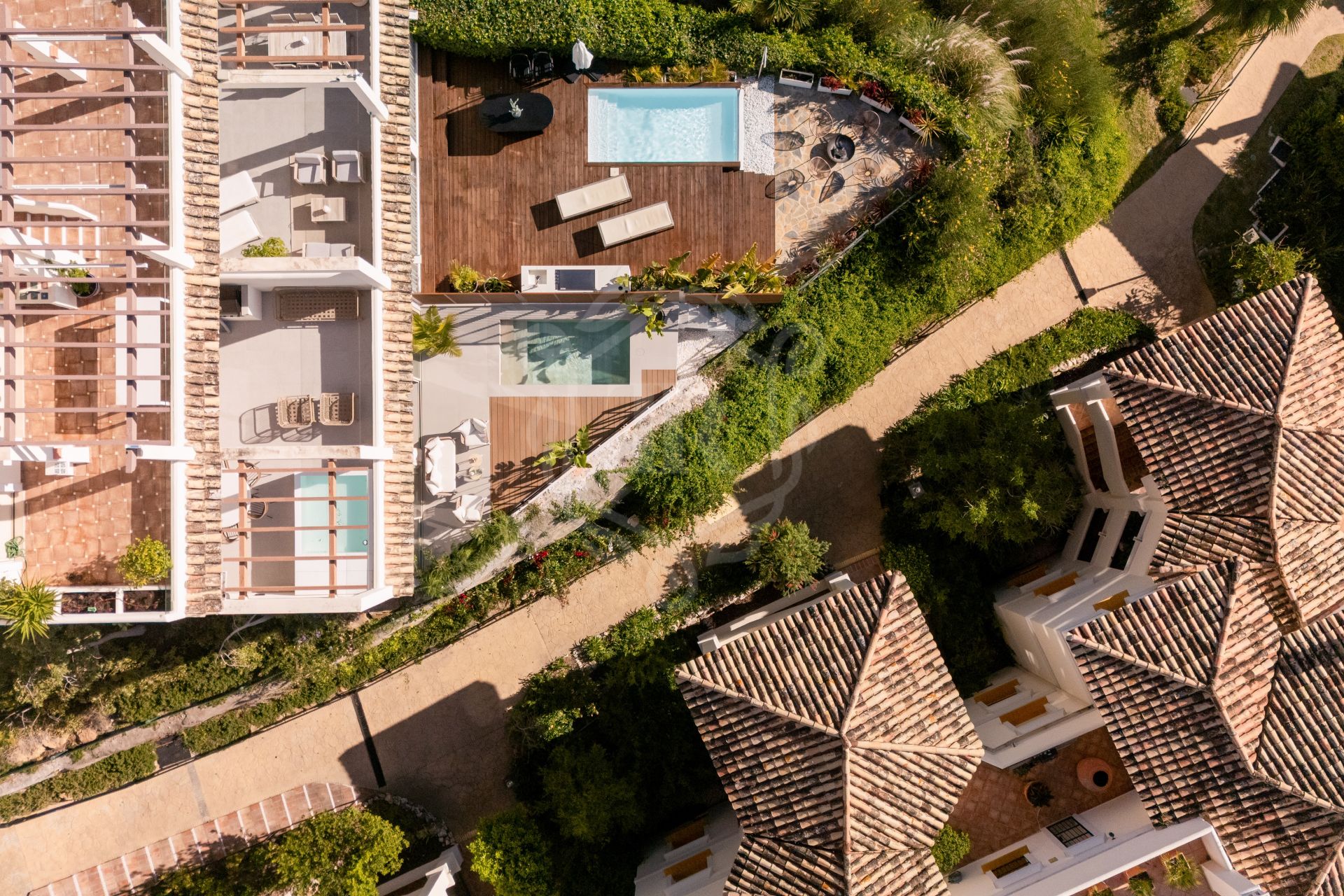 Una característica destacada de esta casa es su piscina privada, situada en una tranquila terraza con vistas panorámicas al mar Mediterráneo y La Concha. Este idílico espacio al aire libre es perfecto para disfrutar durante todo el año, ya sea relajándose junto a la piscina, celebrando cenas al aire libre o simplemente disfrutando del espectacular paisaje.